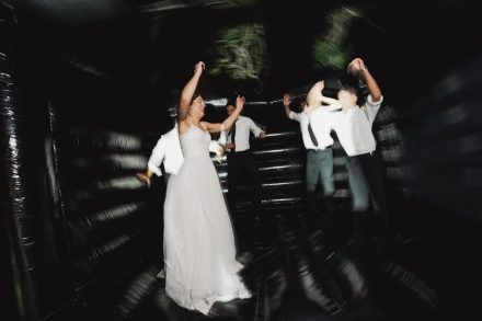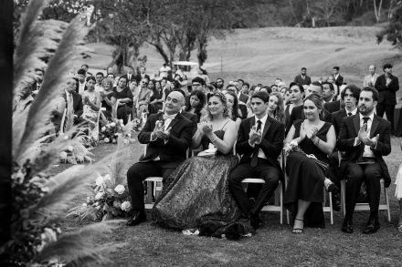 Los novios se escaparon de la ciudad para ofrecer a sus invitados una boda llena de aire puro. Simbolizaron su Sí rodeados de montañas y bailaron bajo los pinos.