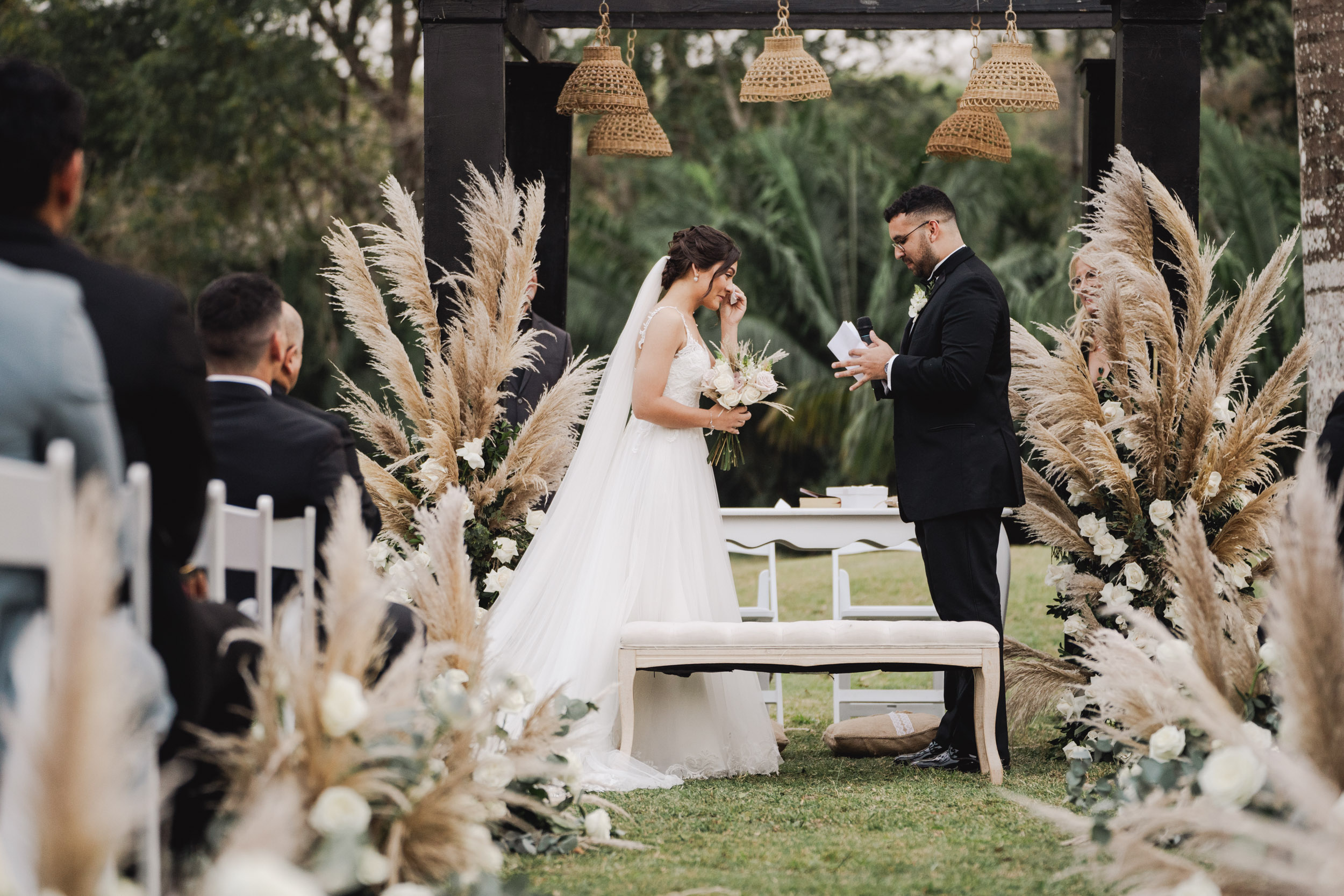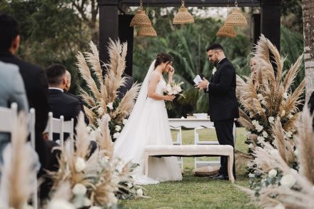 Soñaban con casarse al aire libre y rodeados de naturaleza y así fue. Una boda verde y tropical!