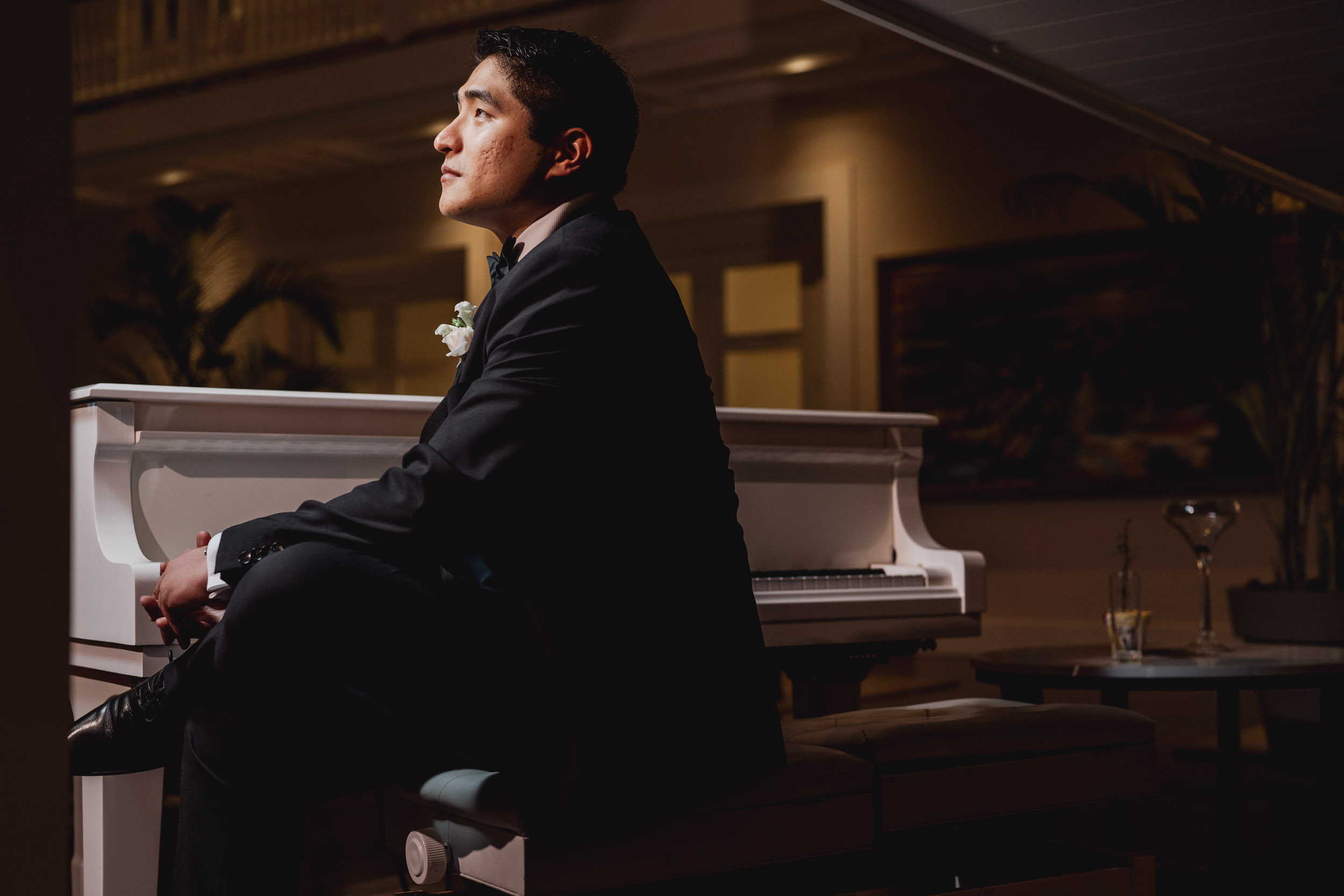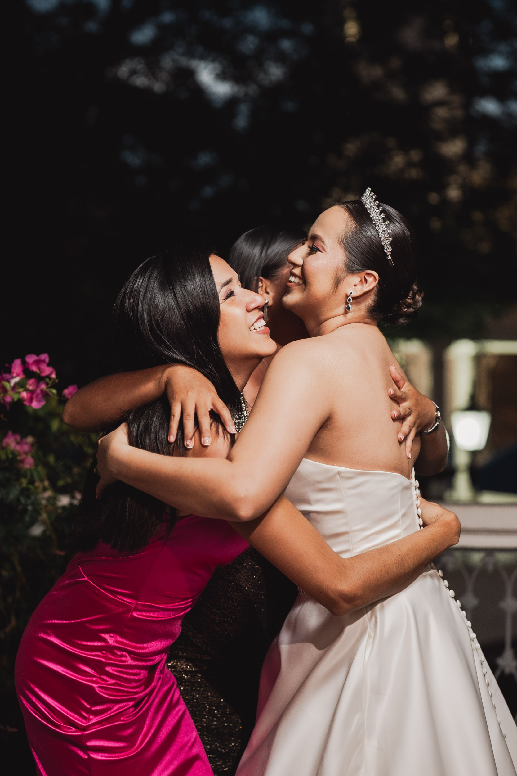 Uno de los momentos más especiales fue la transición del día a la noche. La paleta de colores que nos regaló el cielo fue el espectáculo perfecto para el first look de los novios y retratos. Las fotos nocturnas, con la plaza iluminada, capturaron la esencia mágica del evento.