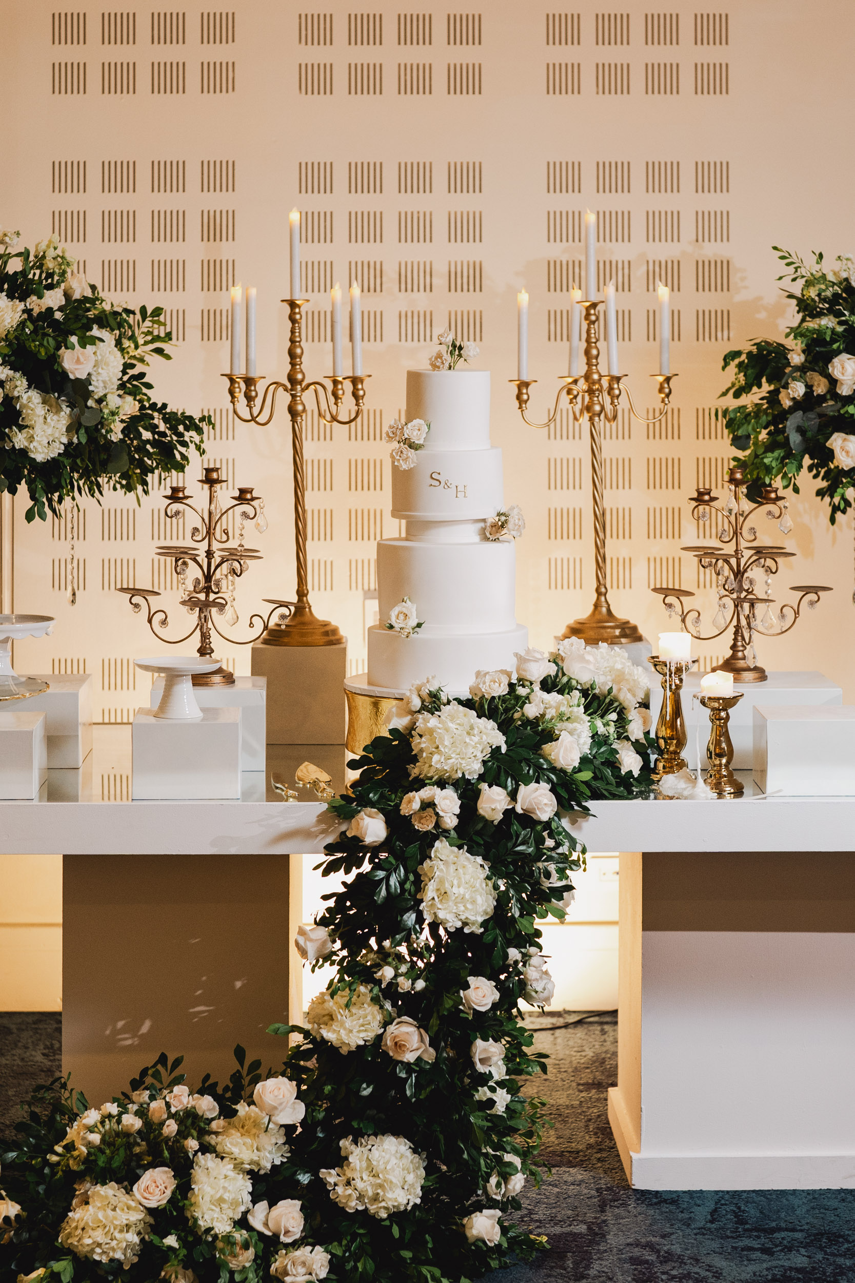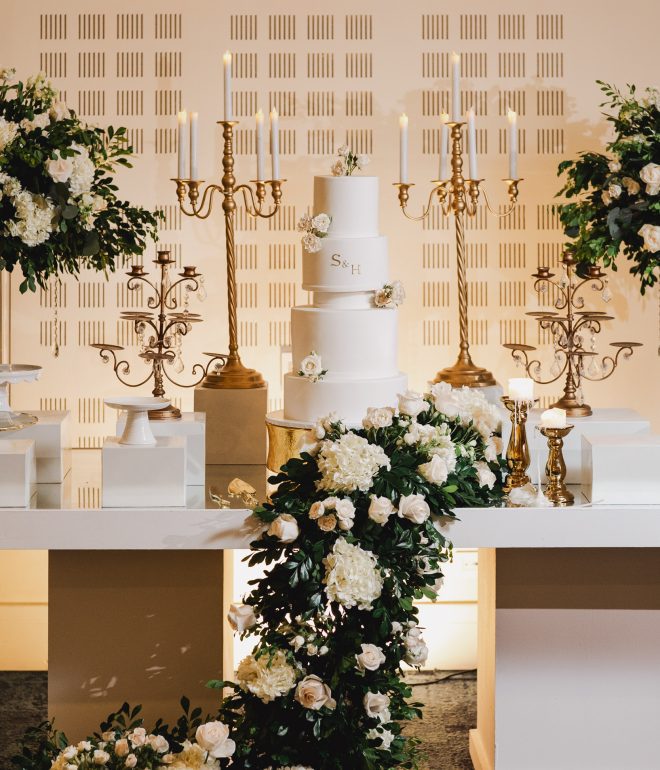 Cada detalle estaba cuidadosamente pensado. Los centros de mesa, los arreglos florales, y la iluminación creaban un ambiente de glamour que no solo brillaba, sino que también aportaba una elegancia atemporal.